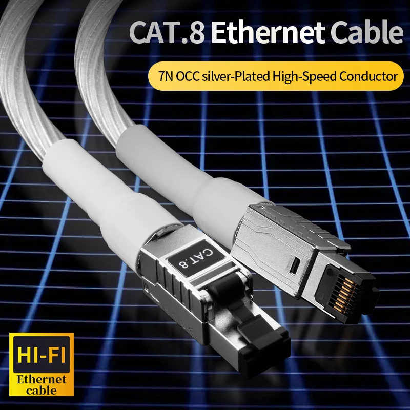 CAT8 OCC Silver Plated HiFi Audio Ethernet Cable High Speed 40Gbps 2000MHz RJ45 Network Patch Audio Cable for Laptop TV Router $62.10