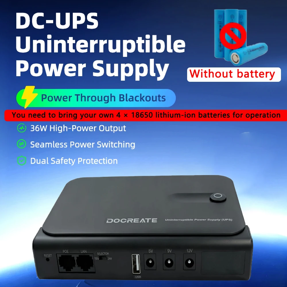 DC UPS 5V-24V Output 36W Uninterr Power Supply 4*18650 Battery(not included) Backup Power for House Router Phone Tablet Modem $28.44