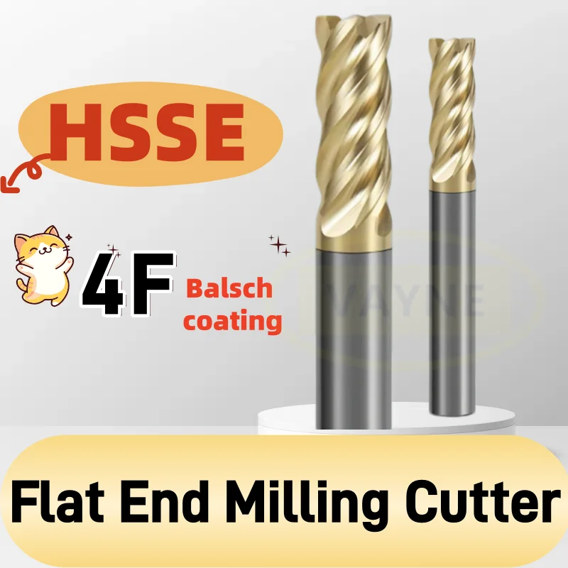 4F HSS-E Balsch Coated Flat End Mills 4mm 5 6 8 10 12 14 16mm Lengthened CNC Tools Milling Cutter For steels Router Bits 1pcs $4.48