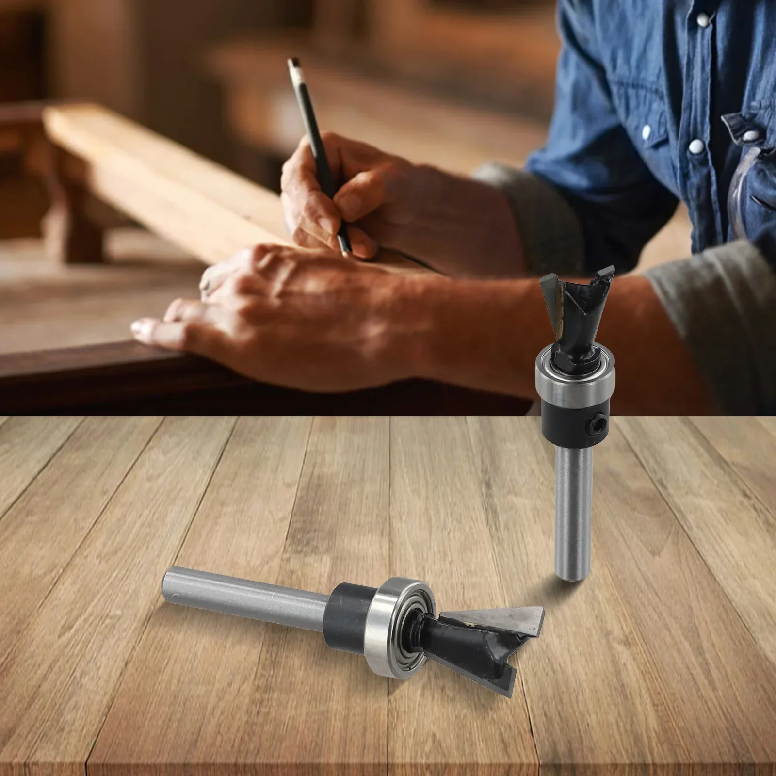 YUSUN 1PC 6MM 6.35MM Shank Double Bearing Flush Trim Bit Router Bit Woodworking Milling Cutter For Wood Bit Face Mill $10.40