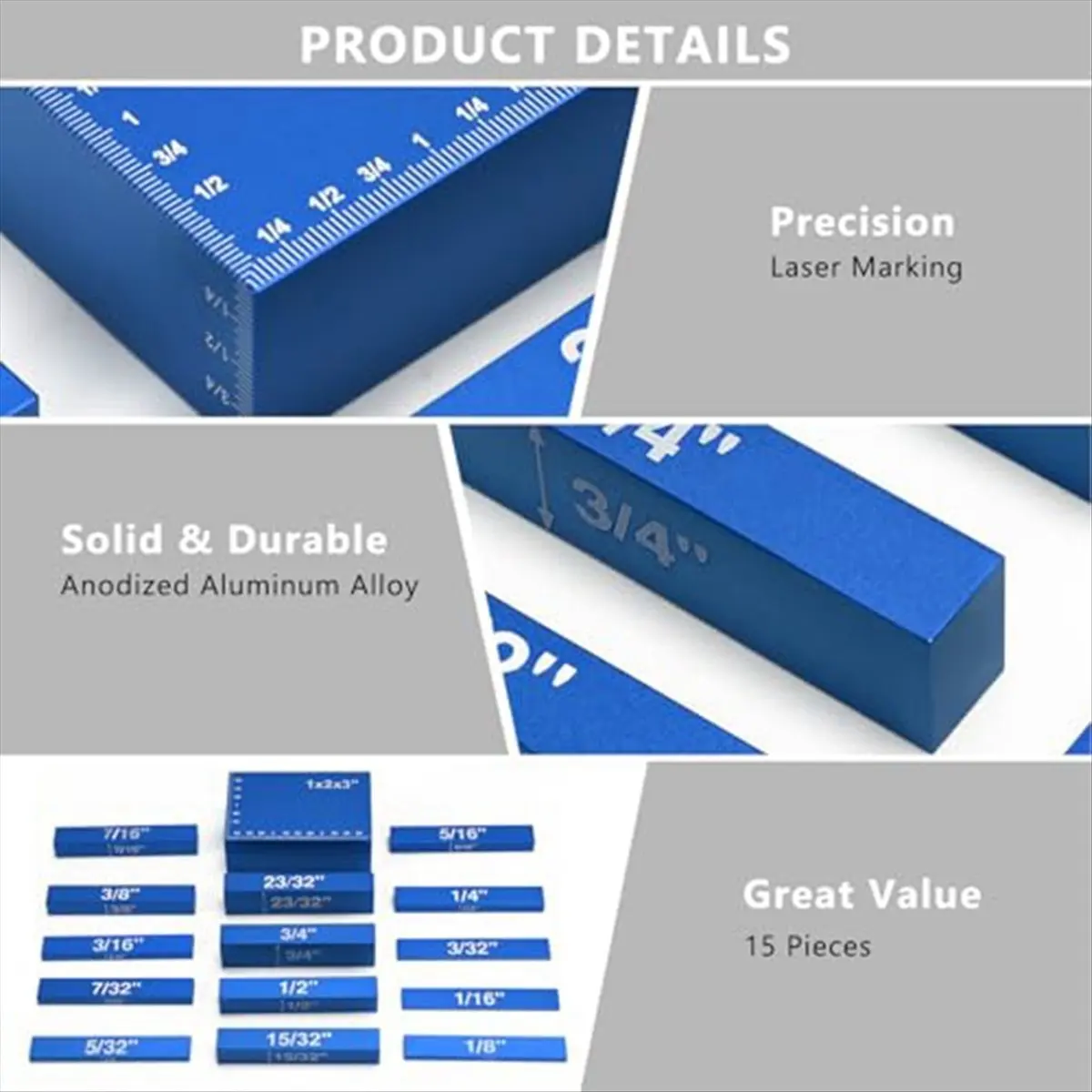A40T Setup Blocks Woodworking Height Gauge Set 15 Pcs of Set Up Bars, Router Table and Table Saw Accessories Blue $37.22