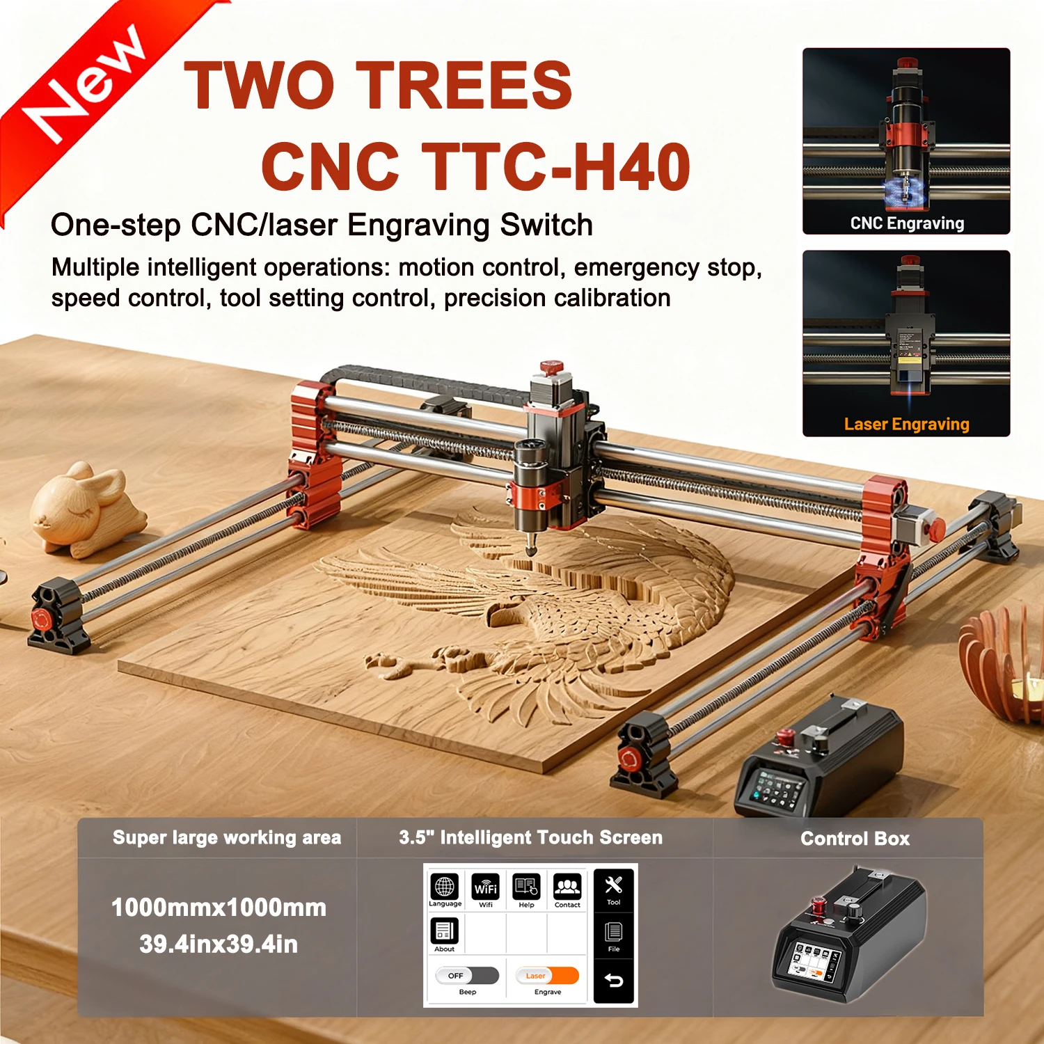 Twotrees TTC H40 CNC Router Machine 1000x1000mm Large Working Area One-step CNC/Laser Engraving switch Multi-material Compatible $1,212.46