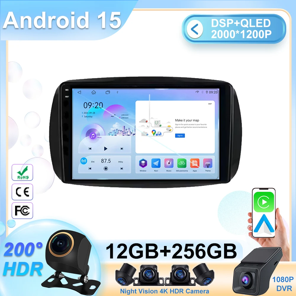 Android 15 For Mercedes Benz Smart 453 Fortwo 2014 -2020 Car Radio Auto GPS Navigation Multimedia Stereo Player Video Carplay $74.54