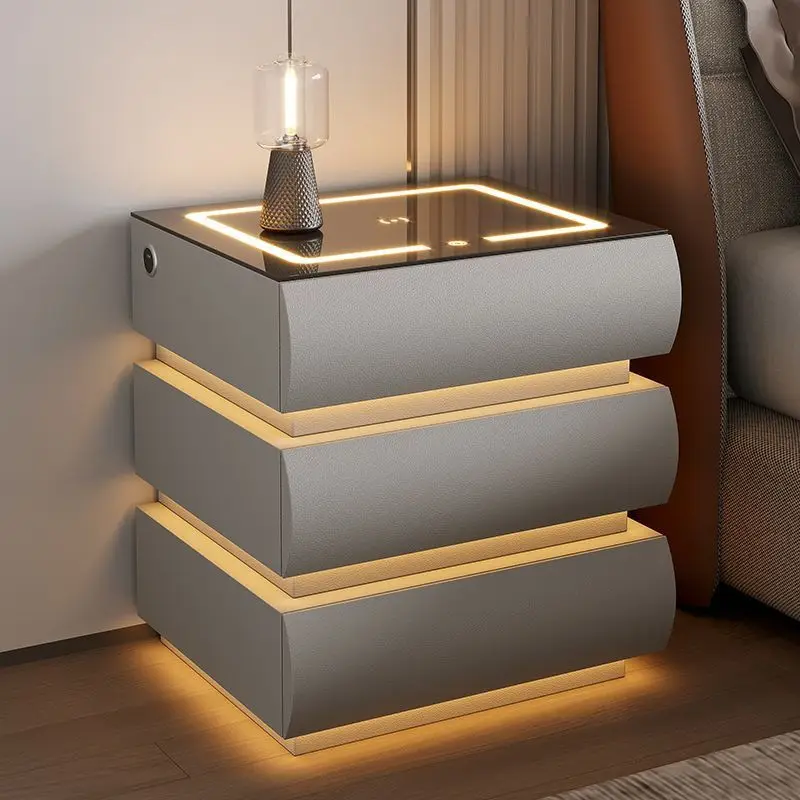 Smart Nightstand Bluetooth Speaker Wireless Charging RGB Mood Lamp Password Lock Modern Minimalist Wooden Bedside Cabinet $402.28