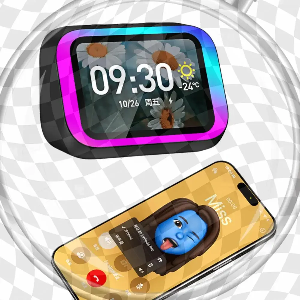 Smart Screen Bluetooth Speaker AI Weather Assistant Temperature Display Atmosphere Light Bedroom Decor Table Speaker Low Latency $35.76