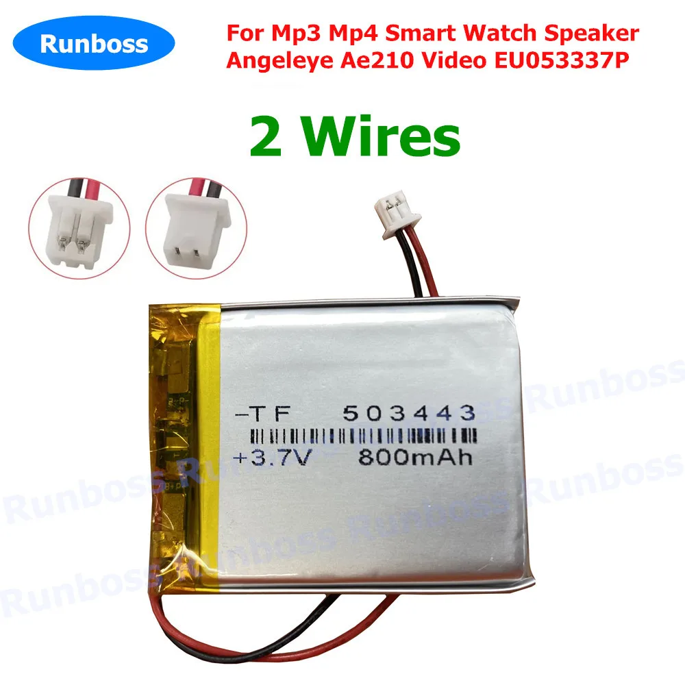 1-10pcs 800mAh 503337 503443 1.25mm 2Pin Polymer Battery For Baby Monitor Smart Watch Speaker Angeleye Ae210 Video NannyCam H32 $4.61