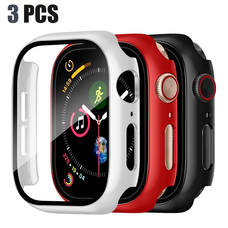 Glass+Case For Apple Watch Series 7 6 5 4 3 SE 45mm 41mm 44mm 40mm 42mm/38 iWatch Screen Protector+Cover Apple Watch Accessories $1.66