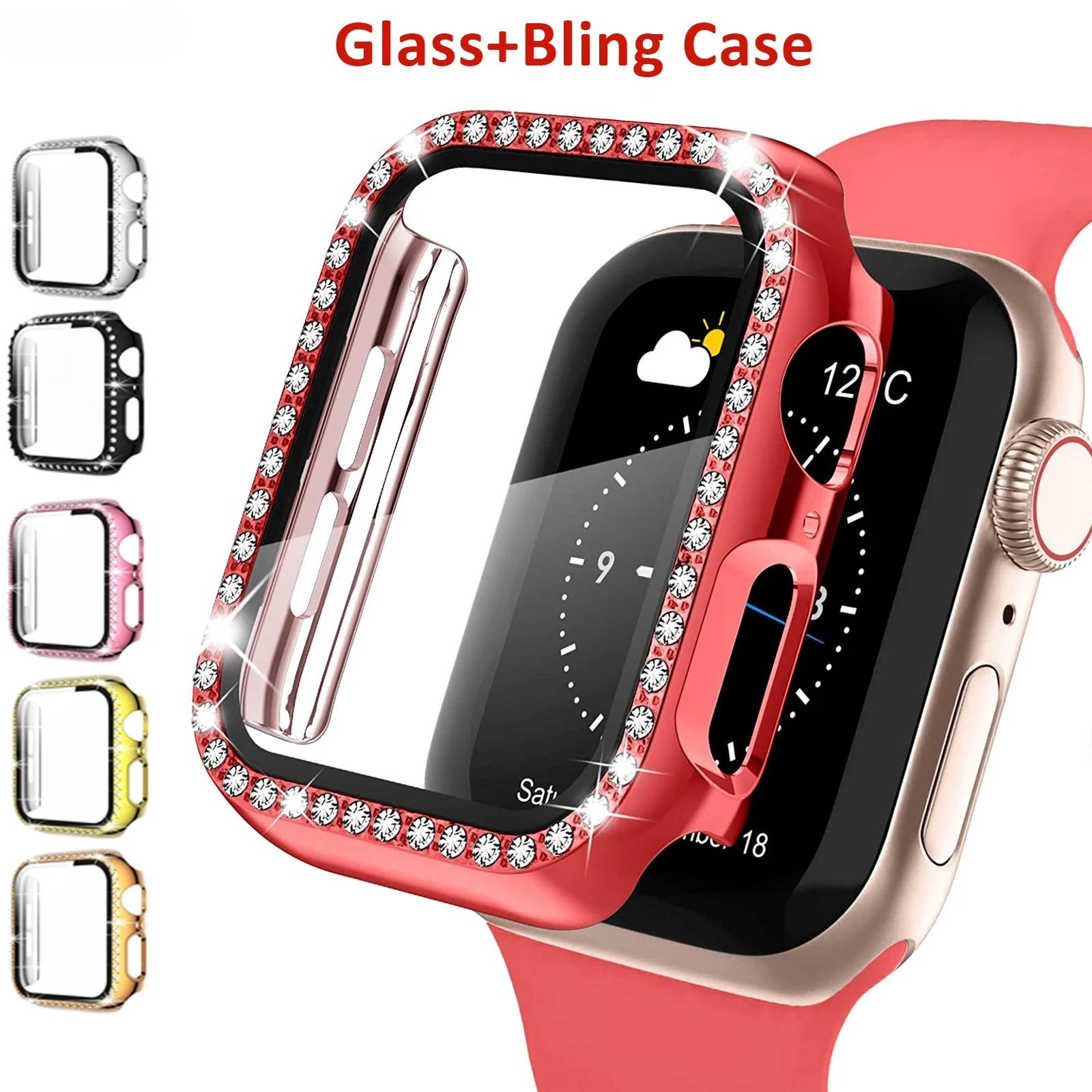 Glass+Case For Apple Watch series 9 8 SE 7 6 5 4 3 bumper Apple watch Cse 44mm 40mm 45mm 41mm iWatch 42mm 38mm Accessories $19.54