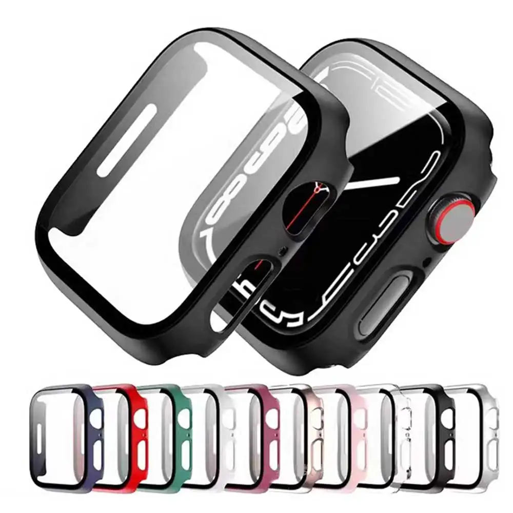 Tempered Glass+cover For Apple Watch Accessories 45mm 41mm 44mm 40mm 42mm Screen Protector Apple watch Case serie 9 4 5 6 SE 7 8 $2.98