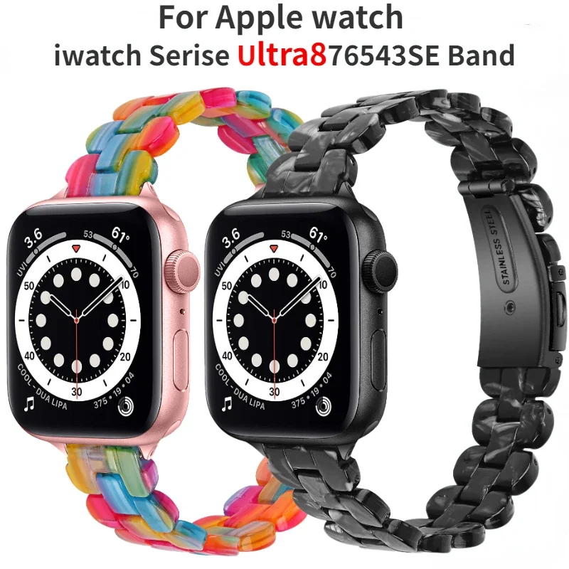 Slim Resin Strap for Apple Watch Band Ultra 49mm 9 8 7 45mm 41mm 44mm 40mm 42mm 38mm Women Bracelet Wristband iWatch 6 5 SE Belt $20.01