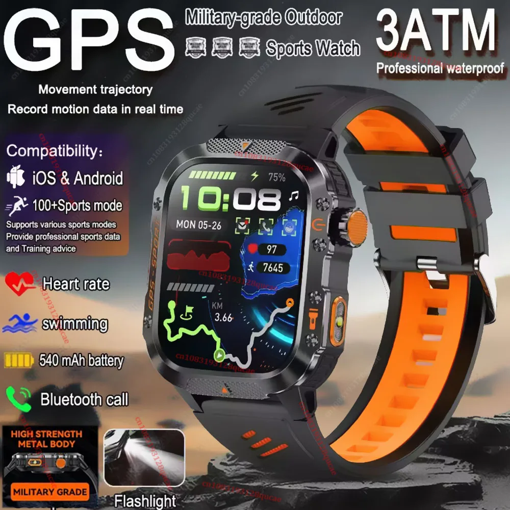 2026 Military Outdoor Smart Watch Men's GPS Flashlight Bluetooth Call 2.01" AMOLED Screen 3ATM Waterproof Sports Smartwatch Hw12 $8.64