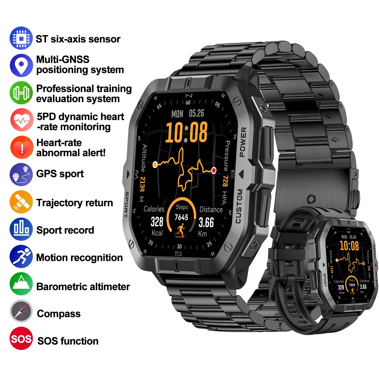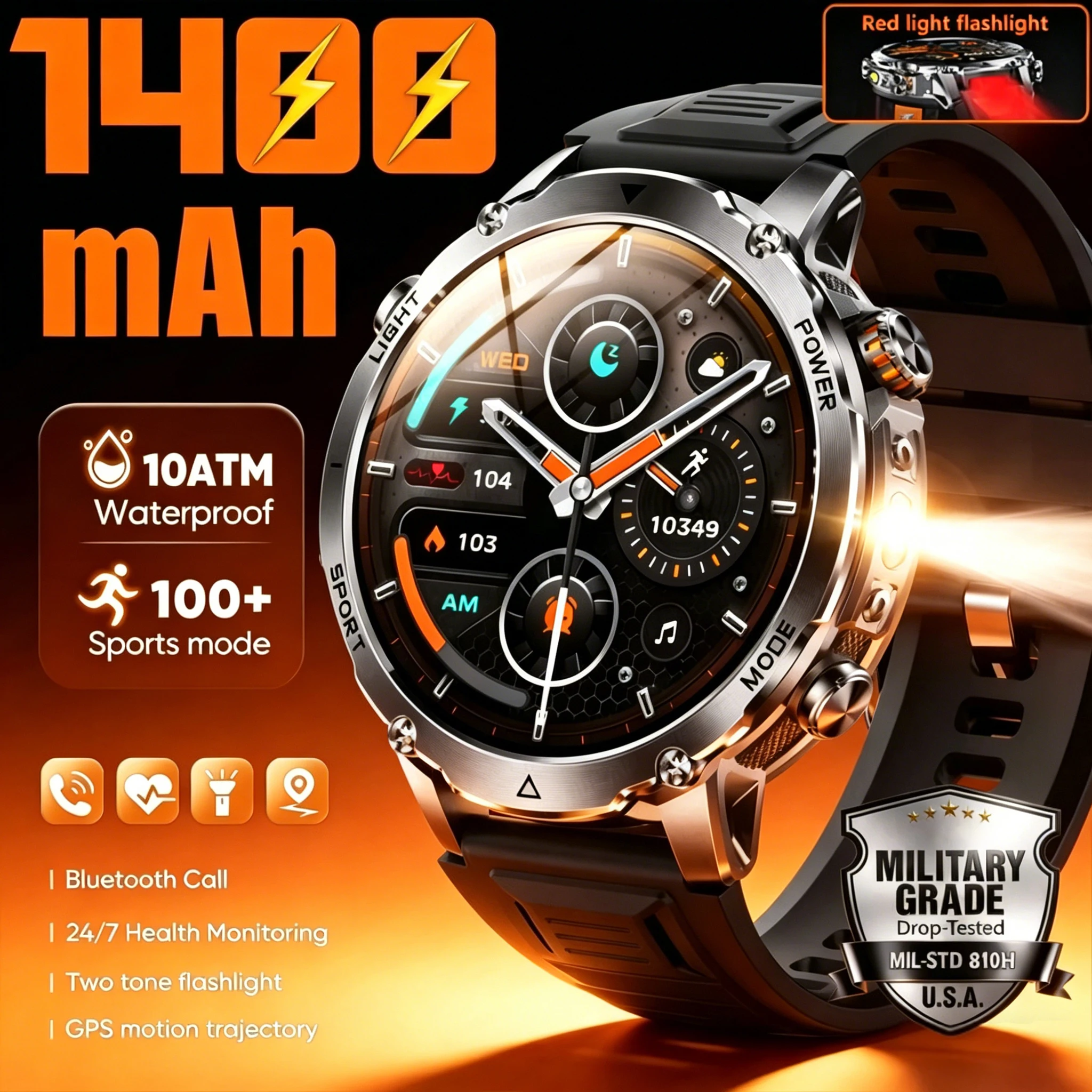 Genuine Outdoor Military 1400mAh Battery Smart Watch 10ATM Waterproof Swim Red White Flashlight Call GPS Track Smartwatch Men $46.74