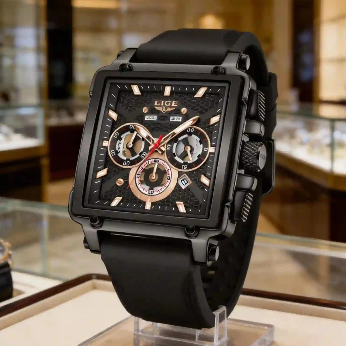 LIGE Fashion Sports Watches with Large Dial Unique RectangularHollow Design Quartz Wristwatches with Chrongraph Auto Date $24.23