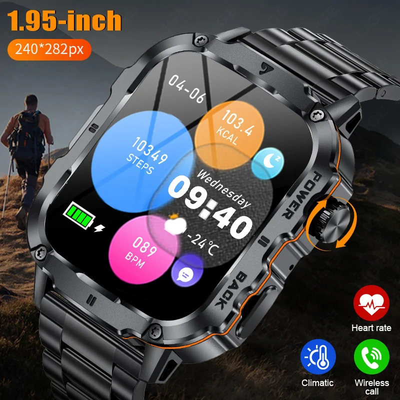 2026 New 1.96'' HD Screen Bluetooth Call Military Smart Watch Men Waterproof Outdoor Sport Fitness Tracker Health Smartwatch Men $2.43