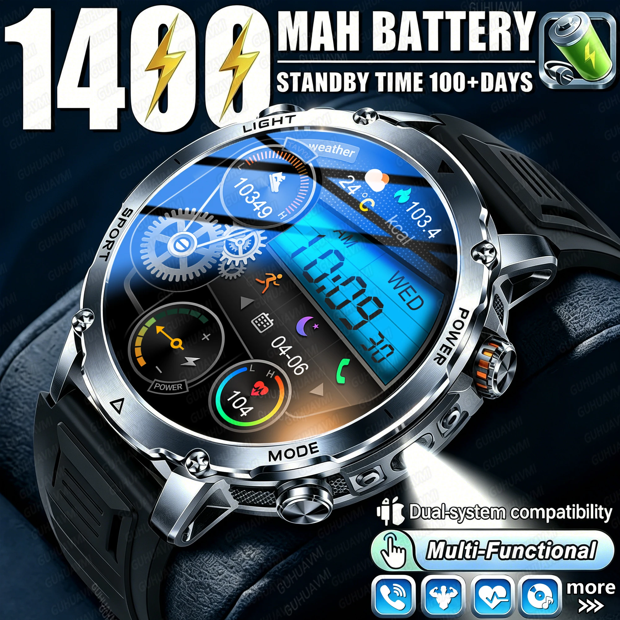 Newly Durable 1400mAh Large Battery Smart Watch Men 1.7" HD Screen IP68K Waterproof LED Flashlight Sports BT Call Smart Bracelet $56.75