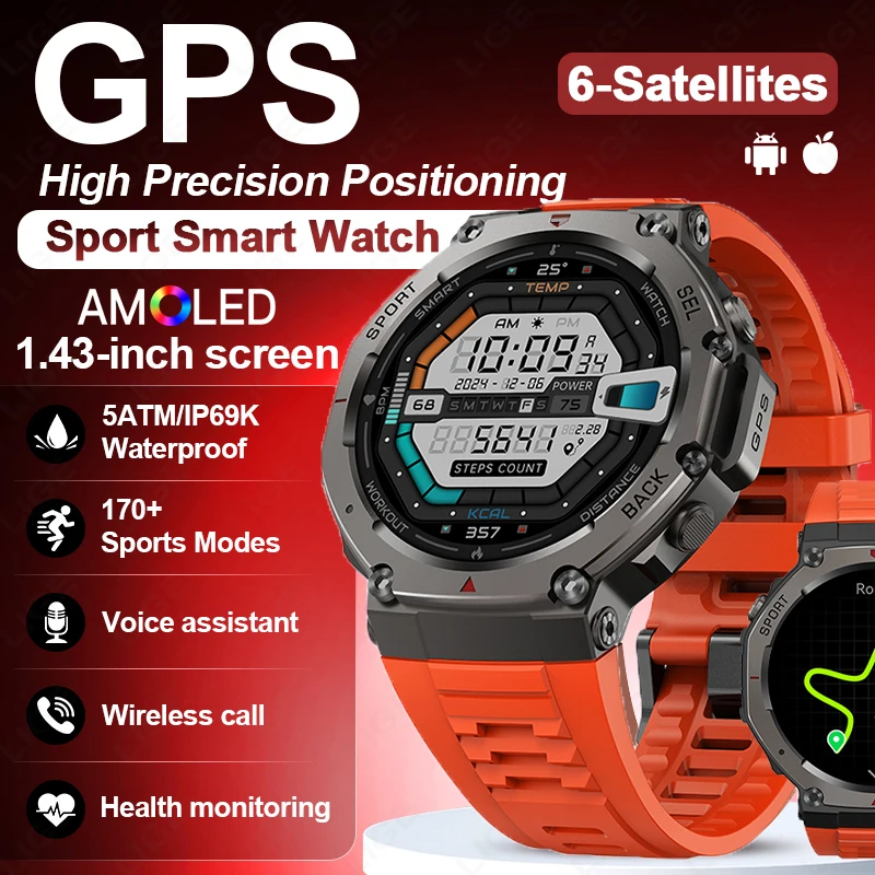 GPS Smart Watch AMOLED 5ATM Waterproof Built-in Dual-band GNSS Compass Military Sport Fitness Smartwatch Men New For Android IOS $58.46