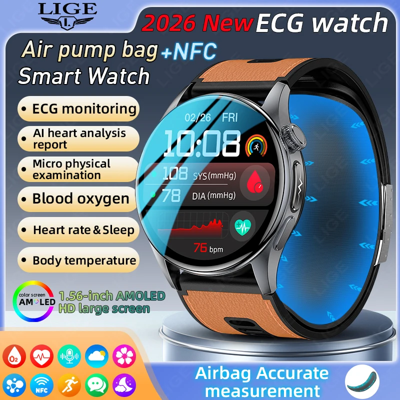 LIGE Accurate Detection Health Smart Watch 2026 New Air Pump Airbag Blood Oxygen Pressure ECG Body Temperature NFC Smartwatch $137.27