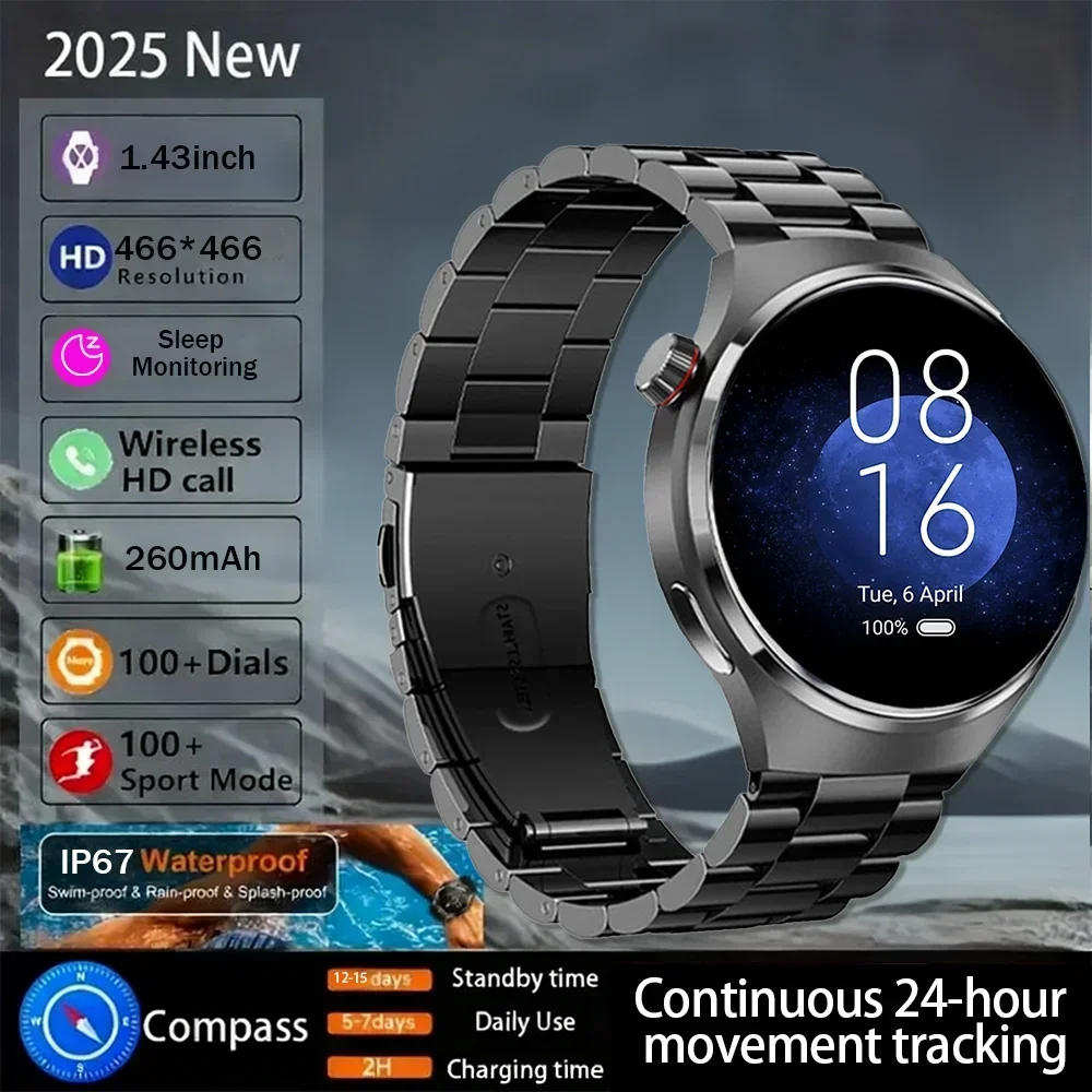 2025 New 1100mAh Long Battery Smart watch 3ATM Waterproof Compass Heart Rate 100+ Sports Mode Bluetooth Call Fitness Smartwatch $25.81