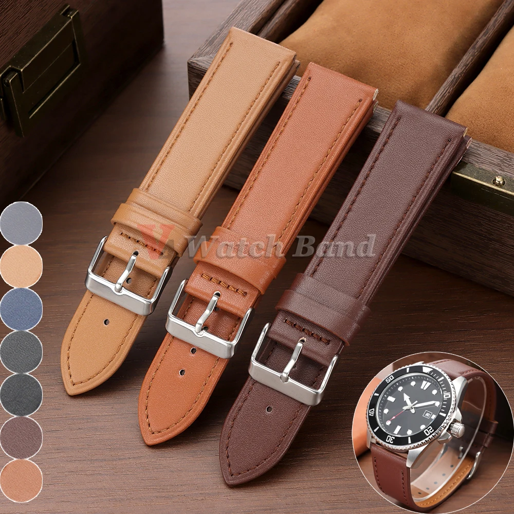 Vintage Brown Slim PU Leather Watch Strap Ultra-thin Leather Watchband 20mm 22mm Wrist Band for Smartwatch Men Women Accessories $3.45