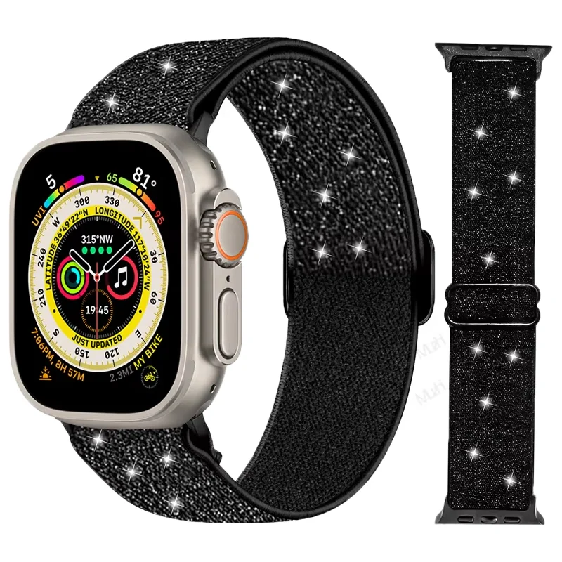 Bohemian Nylon Strap for Apple Watch ultra 2 49mm 41/45mm 46mm 44mm Elastic Shiny Bracelet iWatch Series 10/9/8/7 6 5 4 Se Band $23.44
