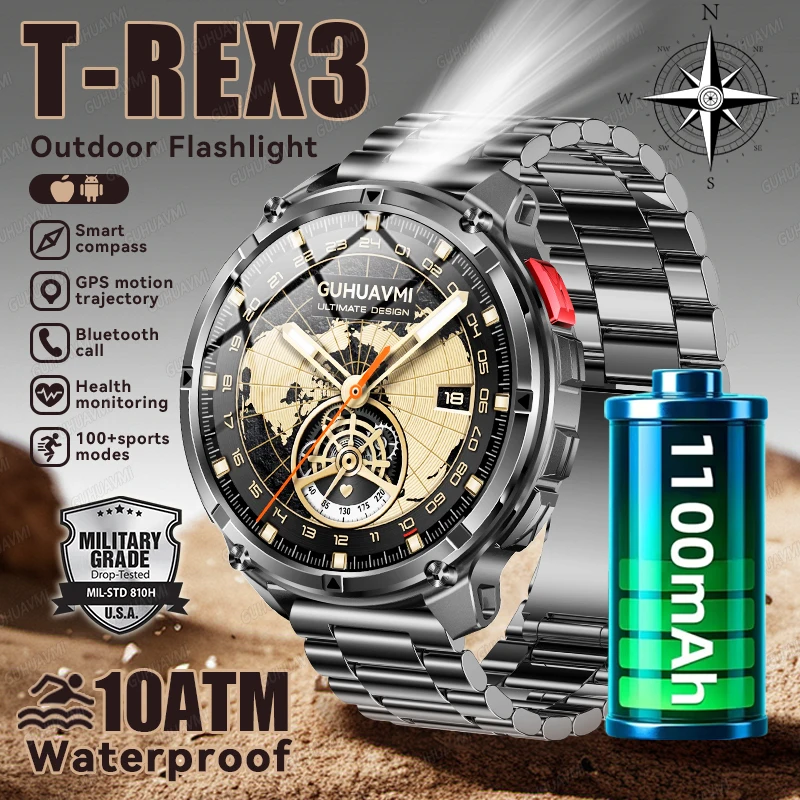 2026 New 1.7-inch Military sports SmartWatch 1100mAh large battery Outdoor compass flashlight 5ATM waterproof BT Call SmartWatch $36.90