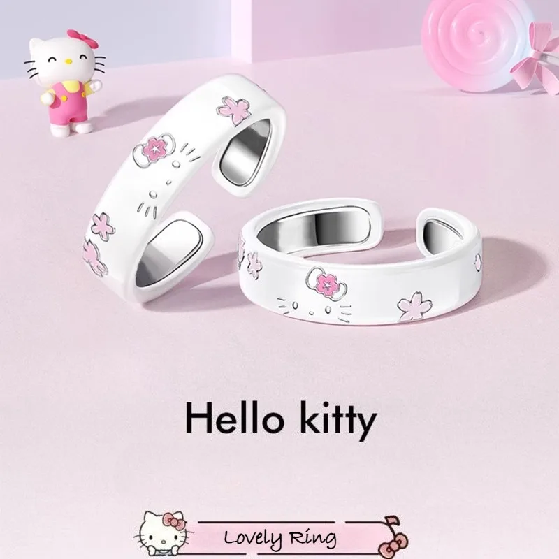 Sanrio Hello Kitty Cartoon Rings AnimeFigures Adjustable Opening Anime Jewelry Merchandise Decoration Cute Gifts for Girlfriends $3.21