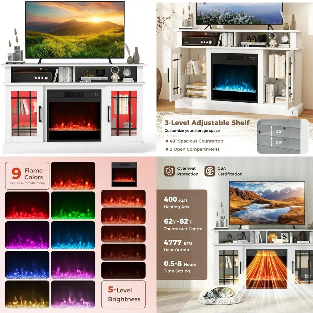 Electric Fireplace TV Stand with 1400W Heater, LED Lights, Remote Control, Supports TVs up to 40 Inches, CSA Certified Long-tail $285.03