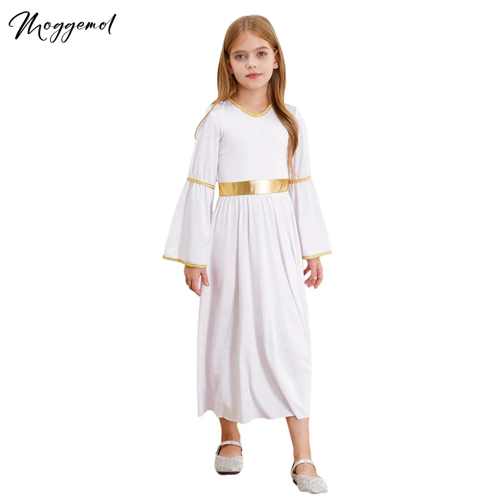 Girls Angel Cosplay Costume Angel Dress Long Sleeve Gold Trim Patchwork Gown Dress for Halloween Cosplay Party Stage Performance $15.66