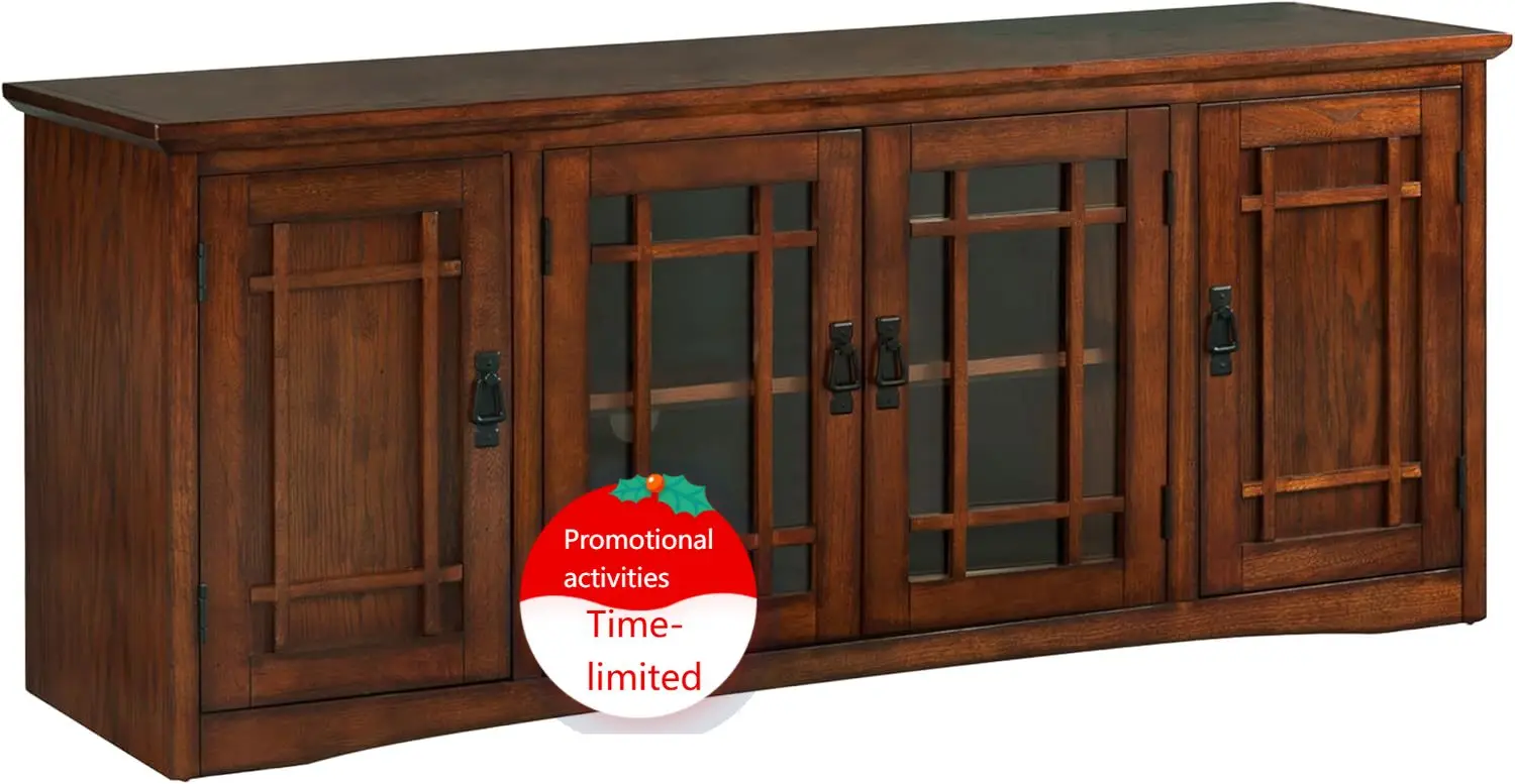 Solid Wood Mission Oak Entertainment Center Four Door Universal TV Console for 65 inch TVs with Living Room Storage Shelves $464.34