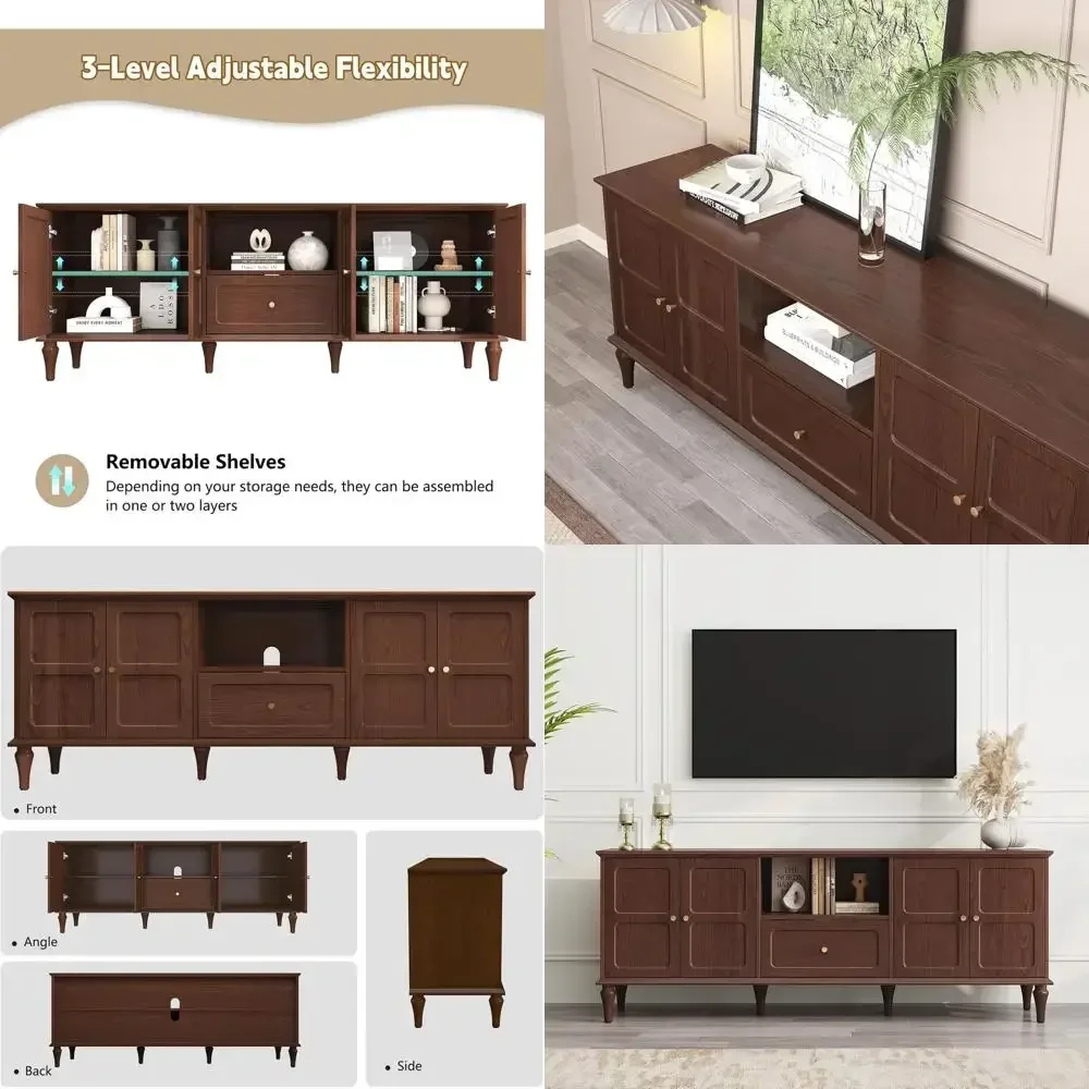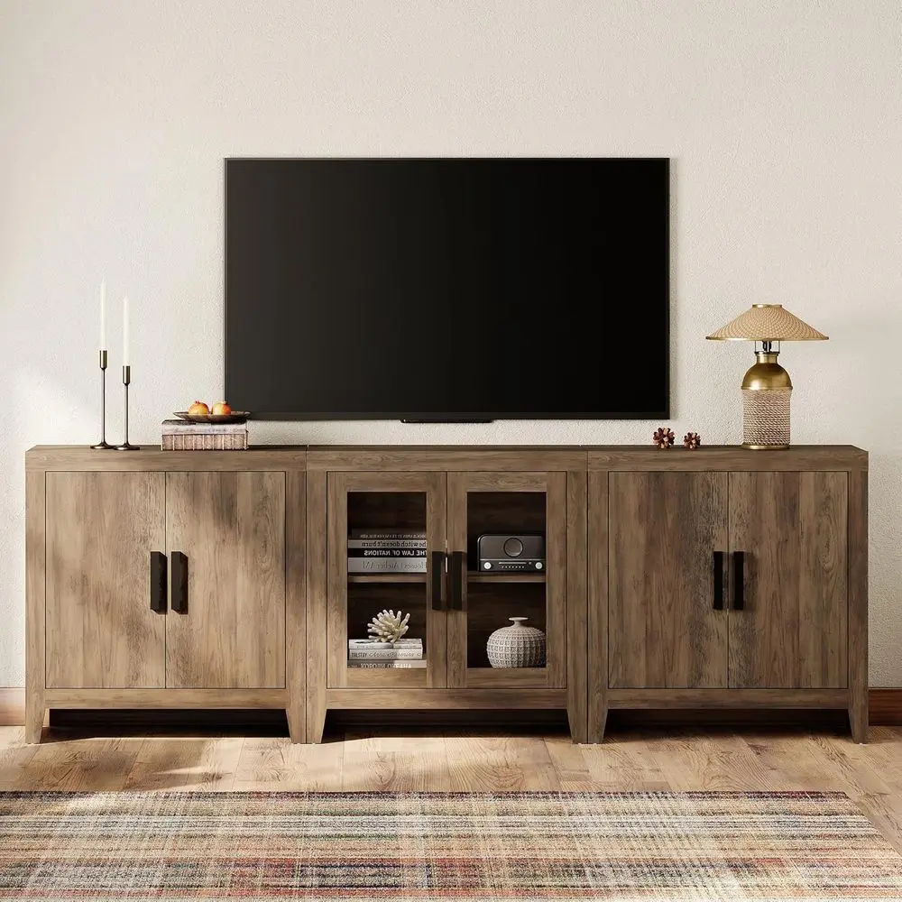 3-Piece Modular Entertainment Center for TVs up to 85, Glass and Wood, Ideal for Media Room, Living Room, Bedroom, Home Theater, $573.83