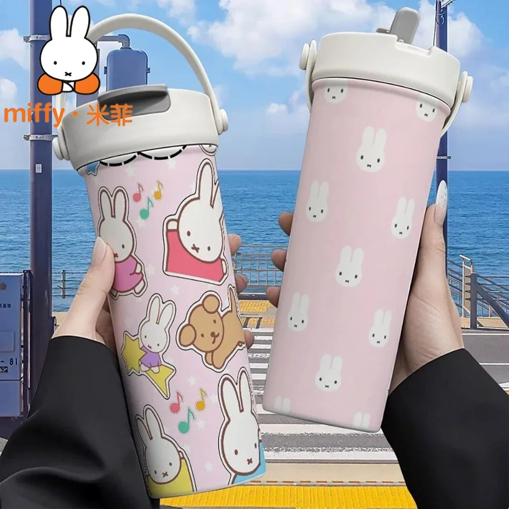 Miffy Rabbit Handheld Thermos Dual Drink Straw Cup Large Capacity Mug Portable Coffee Tea Bottle Drinkware for Office Outdoor $25.28