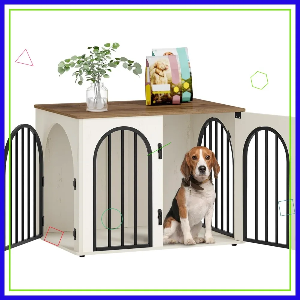 31.5" Wooden Dog Crate Furniture, Indoor Kennel for Small/Medium Dogs, Decorative Pet House End Side Table TV Stand, White Brown $139.35