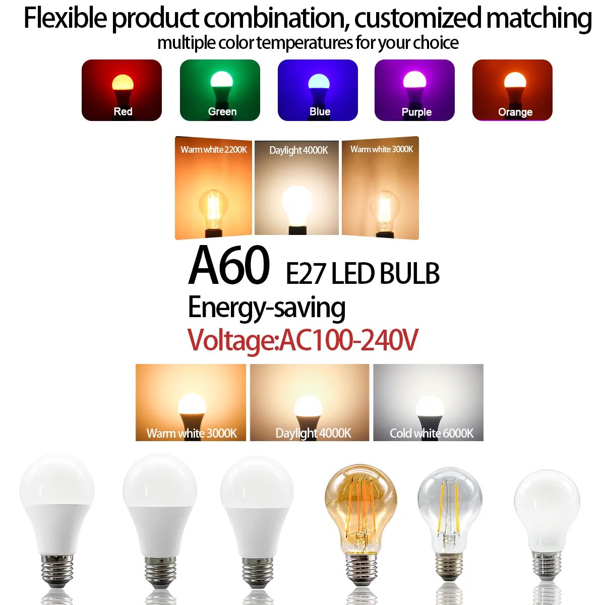 2-Pack AC100-240V 9W High-Quality LED Bulbs (Warm White/Daylight/Red Green Purple) E27 Glass Bulbs for Living Room Decoration $5.29