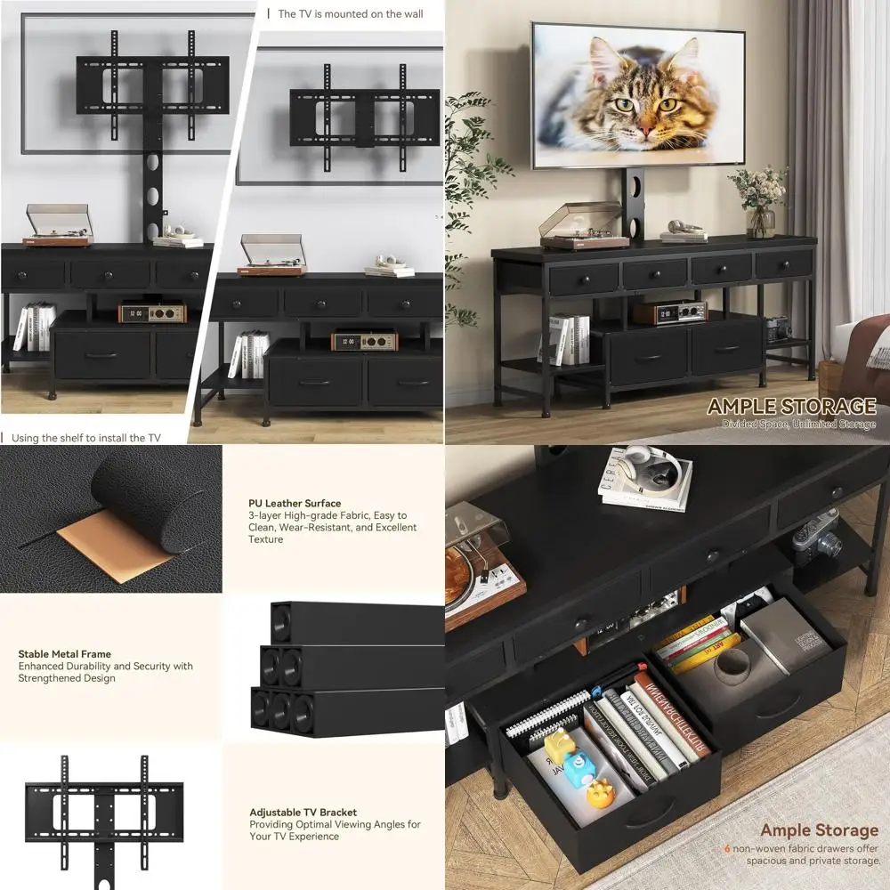 Universal TV Stand with Wall Mount for 65 to 75 TVs, Open Shelf Entertainment Center and Media Storage Cabinet $130.65