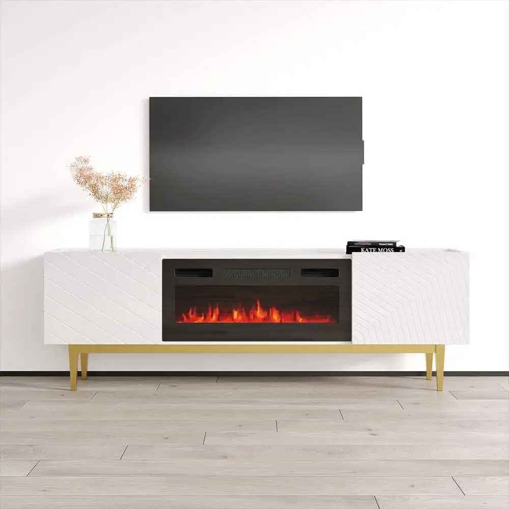 Modern High Gloss White TV Stand with Electric Fireplace, Storage Cabinets, and Entertainment Center for TVs up to 80 $218.48