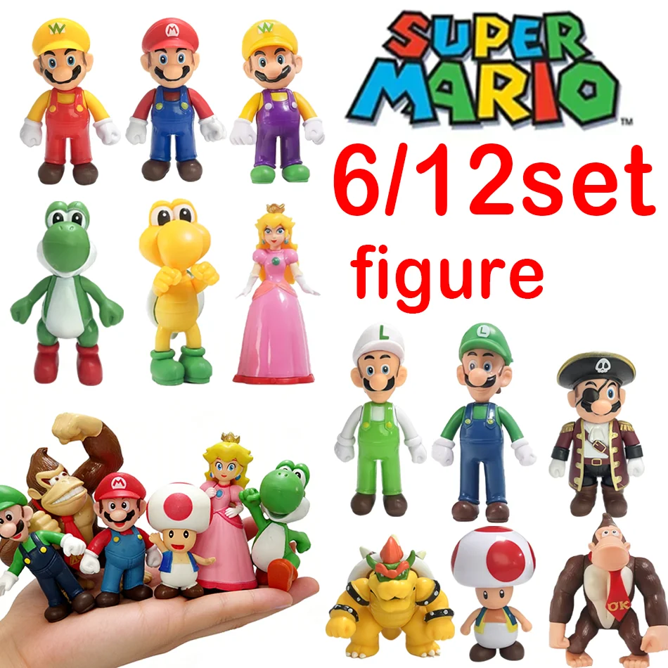 2026 6/12pcs Super Mario Bros PVC Action Figure Toys Dolls Model Set Luigi Yoshi Donkey Kong MushroomFor Birthday Gifts ornament $27.16