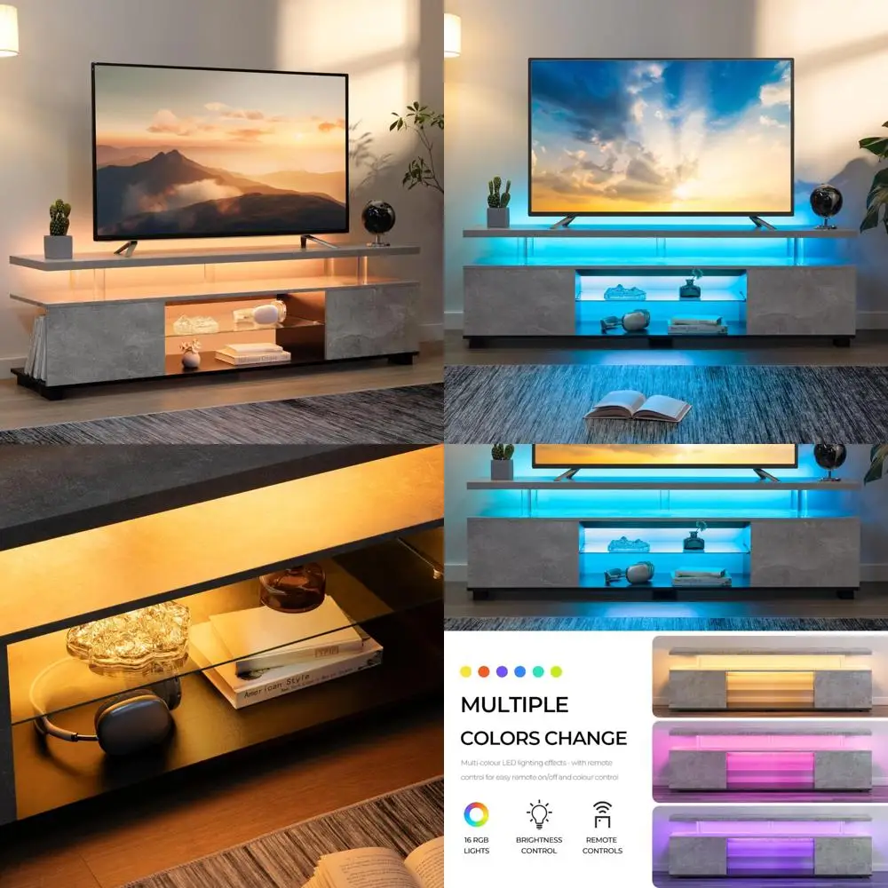 Large LED TV Stand for 75+ Inch TVs - Modern Glass Living Room, Bedroom, and Home Office Furniture $193.40