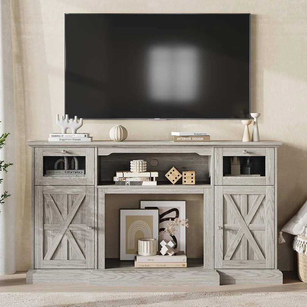 maupvit modern farmhouse tv stand for 65 inch tv, entertainment center with storage cabinets and adjustable shelves, wood tv med $108.57