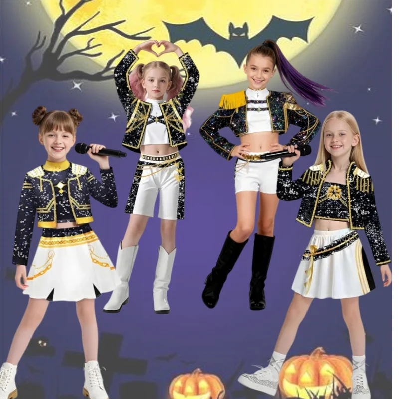 New K-Pop Devil Hunter Zoey Rumi Mira cosplay costume set, fancy costume idol movie cosplay, children's Halloween carnival set $21.28
