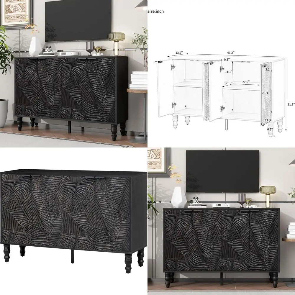 Modern 47.2 TV Stand Entertainment Center with 2 Storage Spaces, Solid Wood Legs, Anti-tip Device for Media Console $229.05