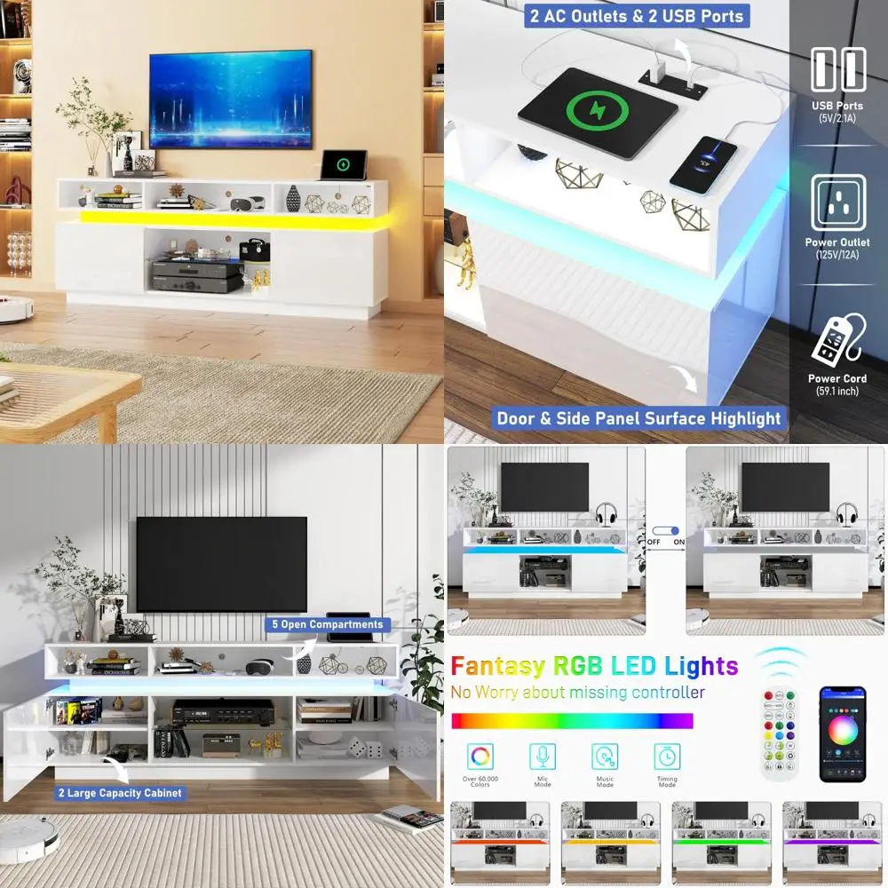 75 Inch LED TV Stand - Modern Tall Entertainment Center with Power Outlets, High Gloss Gaming Media Console $189.03