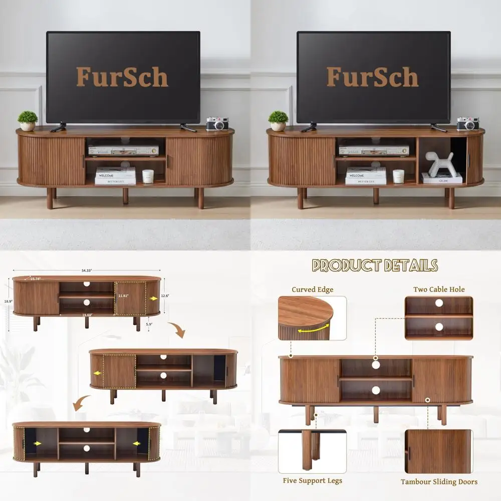 Mid Century Modern TV Stand for 65 TVs, Curved Edge Design with Storage, Ideal for Bedroom Entertainment $173.04