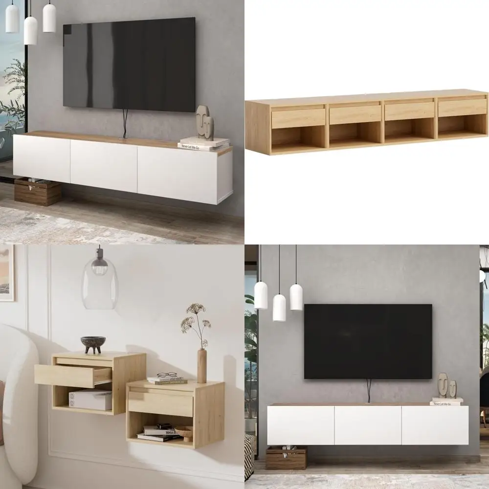 Modern White Wall-Mounted TV Stand for 80 Inch TVs, Floating Entertainment Center for Living Room $136.40