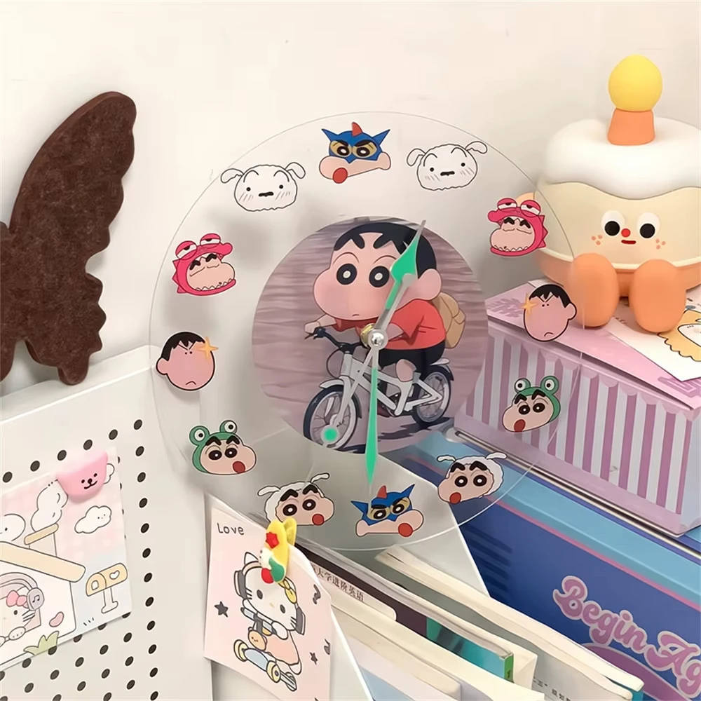 Kawaii Crayon Shin-chan Acrylic Wall Clock Anime Transparent Silent Wall Clock for Girls Bedroom Decor Birthday Christmas Gifts $7.64