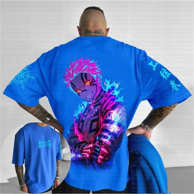 Demon Slayer Anime Akaza Printed T-Shirt Men's 2025 Summer New American Street Trend Versatile Plus Size Parent-child Top $11.24