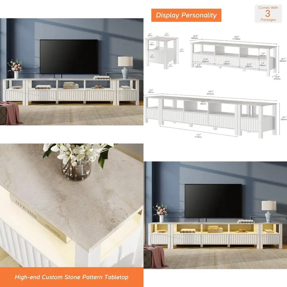 Modern White Entertainment Center for TVs up to 100 Inch, 80/85/90 Inch TV Console Table with 10 Storage Cubbies $345.18