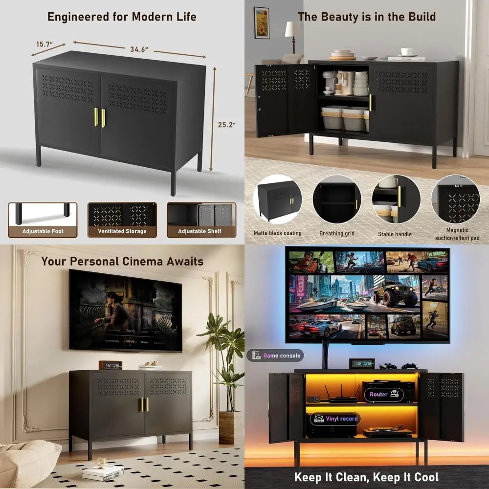 Black Metal Accent Locker Storage Cabinet with 2 Doors, Magnetic Closure, Adjustable Shelf, TV Stand, and Nightstand for Living $123.75