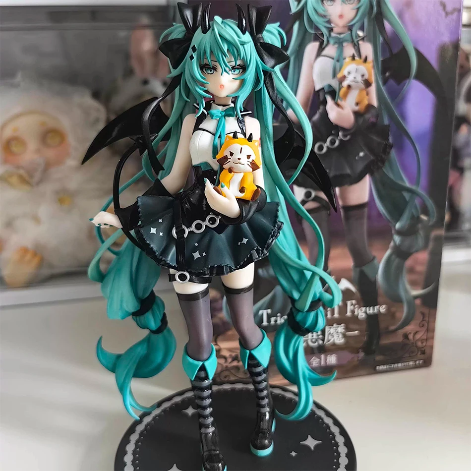 New Anime Little Devil Hatsune Miku Handmade Little Raccoon Miku Dark Angel Handmade PVC Model Anime Peripheral Ornaments Gift $8.05