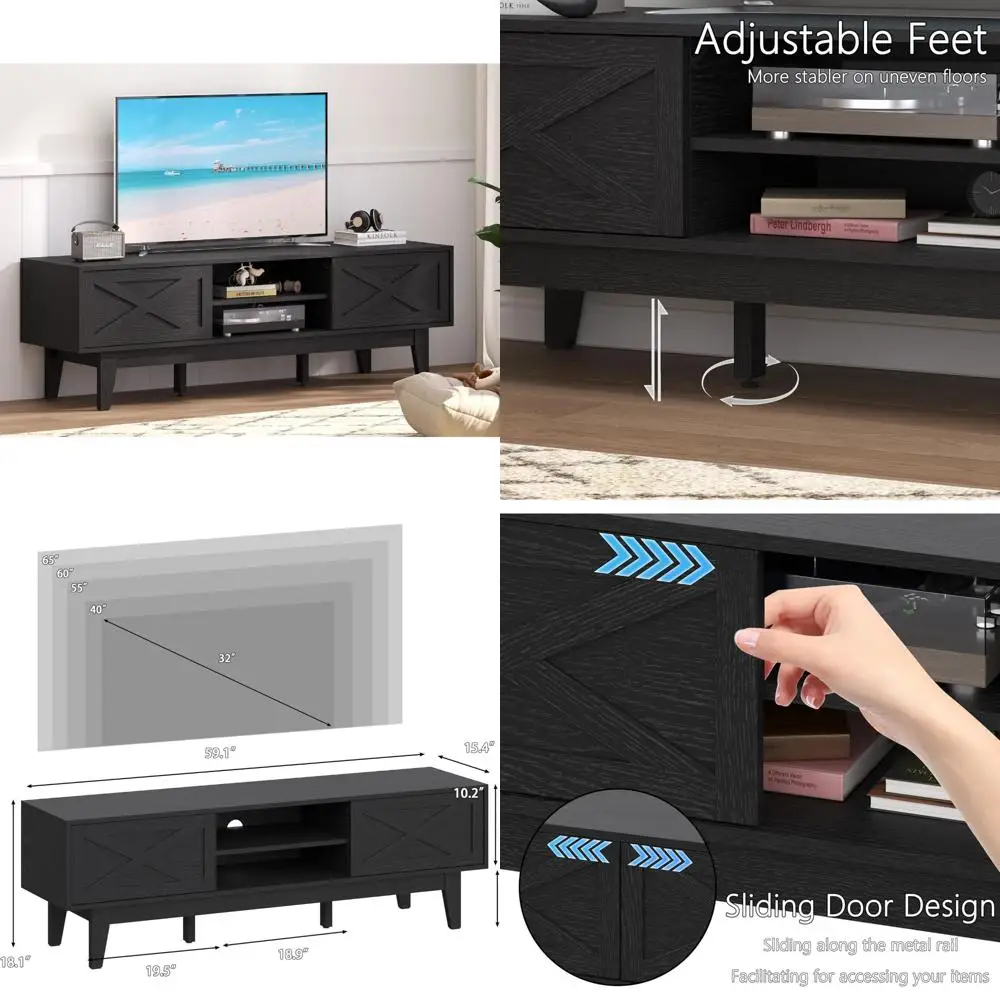 Rustic Farmhouse Style TV Stand with Sliding Doors and Storage for 55-65 Inch TVs, Entertainment Center with Shelves $91.61
