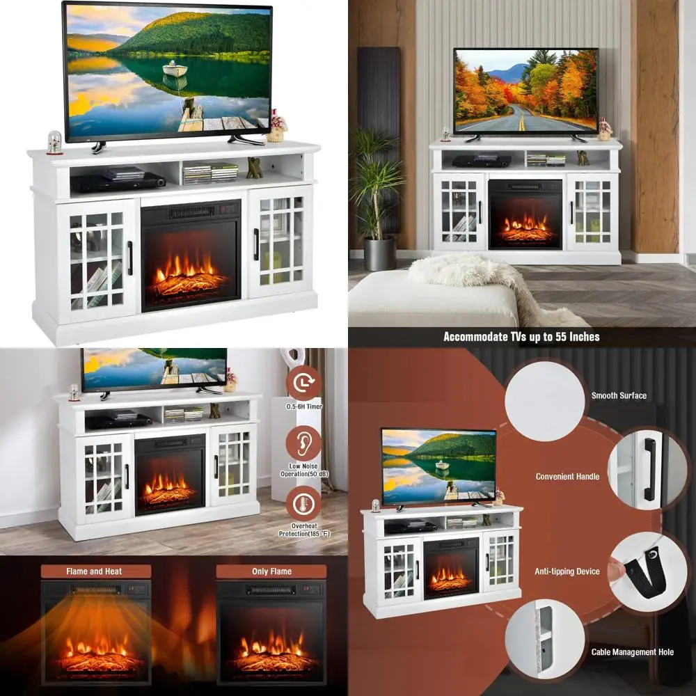 Electric Fireplace Entertainment Center for 55 TVs, Freestanding Wood TV Stand with 18 Fireplace, 48 Console $295.21